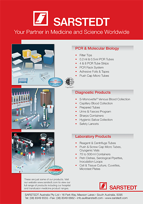 SARSTEDT Australia is recognised in Australia and internationally as a quality manufacturer and distributor of a comprehensive range of diagnostic, laboratory and medical products.